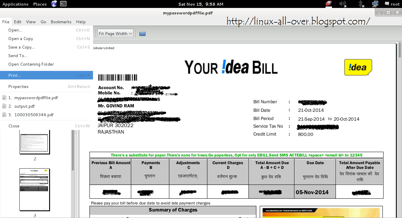 Now a days PDF file format is most known format in the web world. Many PDF viewers are available for windows & Linux OS.When you receive a system generated PDF Like : Your mobile e-bill, your e-ticket,your aadhar card (UID).