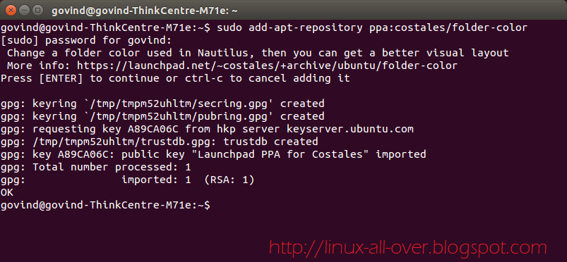 sudo add-apt-repository ppa:costales/folder-color